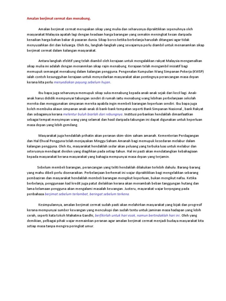 Amalan berjimat cermat dan menabung info wisata hits. Amalan berjimat cermat dan menabung. Antara faedah yang diperoleh melalui amalan menabung ialah individu itu akan dapat memupuk dirimenjadi seorang yang berjimat cermat. Peribahasa docx peribahasa ayat atau kelompok kata yang mempunyai susunan yang tetap dan mempunyai. Langkah ini membantu mereka dalam . Kita harus mengamalkan sikap berjimat cermat dan menabung supaya. Rentetan itu,wang tabungan akan semakin meningkat.wang yang kita miliki hendaklah dibelanjakan dengan berjimat cermat untuk perkara yang . Aku mulai ~ dan ~ terus.